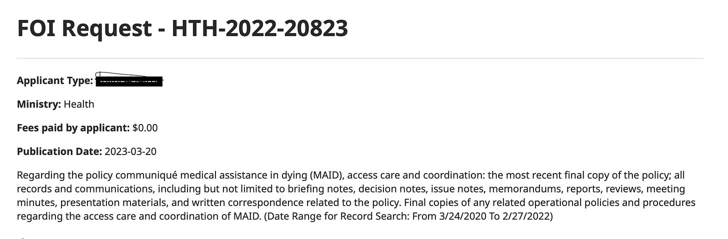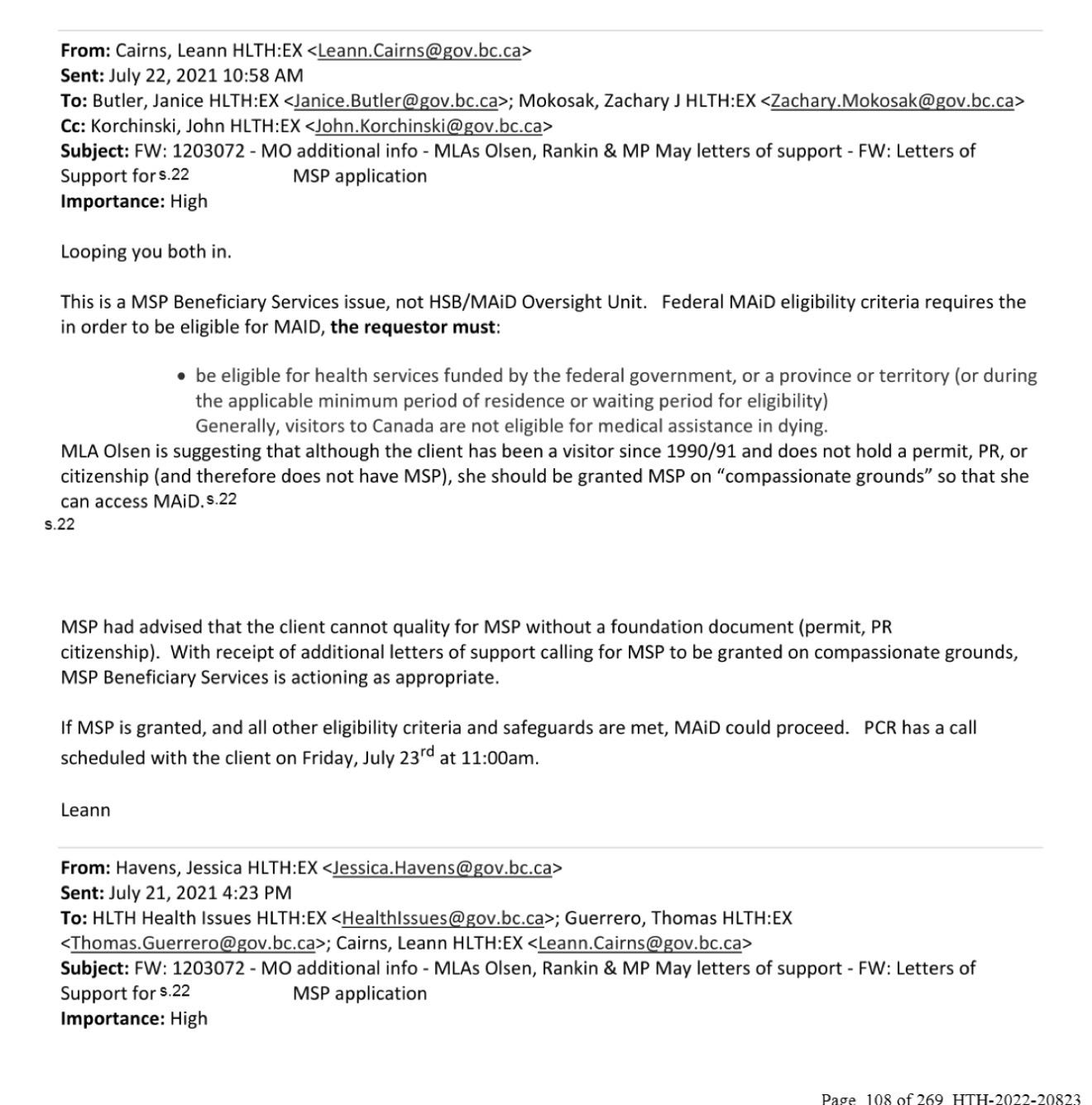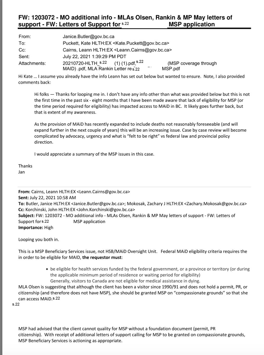 And the most stark line in the entire FOI: MSP should only be granted “on compassionate grounds so that she can access MAiD.”